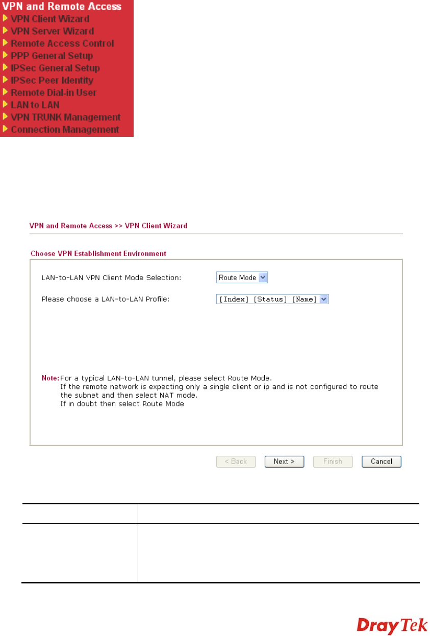 Route Mode/NAT Mode – If the remote network only